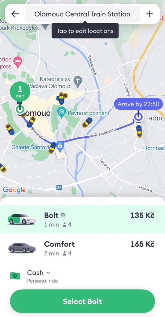チェコ国内であれば、基本的にどの都市でも使用可能かと思います。Boltのドライバーだけではなく地元のタクシー会社とも提携しているため、安全面も完璧。通知もわかりやすいため、初めてでも使いやすいです。