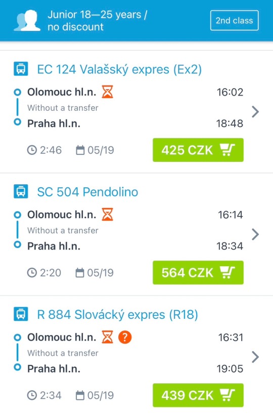 また、プラハに飛行機で到着した際に最初に使うであろう「空港→中央駅直通バス」も国鉄の管轄のため、その時間もこのアプリから検索することができます。