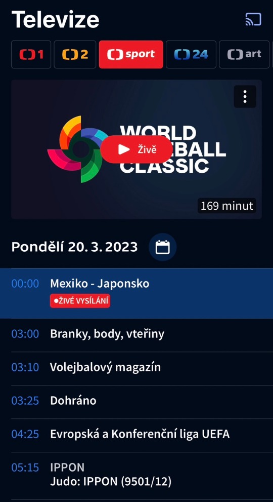 アプリではライブ配信だけでなく見逃し配信も行っているため、チェコの暮らしをテレビから知りたい方にはおすすめです。私は昨年のサッカーW杯の頃にアプリをダウンロードし、チェコ史上初の全国中継となった3月の野球WBCもこのアプリで見届けました。