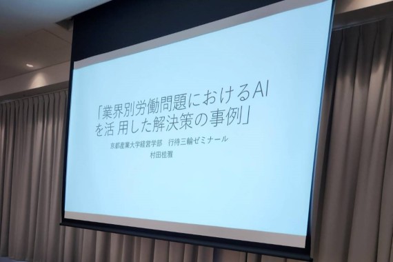 2024年度、行待ゼミでは、労働問題(物流業界や医療業界、そして教職など)と問題の解決におけるAIの活用をテーマに研究を行っています。当日は、物流業界と医療業界、教職での労働環境における現状を取り上げるとともに、これらの問題をAIの活用でどのように解決していくのかについて、具体的な事例を交えて報告を行いました。参加者からは、「AIによる解決事例は有意義なものの、AIではなく人間でしかなしえない職種もあり、どのように境界線を引くことが望ましいか」など多くの意見をいただきました。