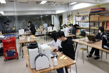 ファブスペースは、3Dプリンタやレーザーカッターといったデジタル工作機器を活用したものづくりや電子工作を日常的にすることができる学内施設です。所定の講習会を受講した京都産業大学の学生であれば1年次より使用することができます。