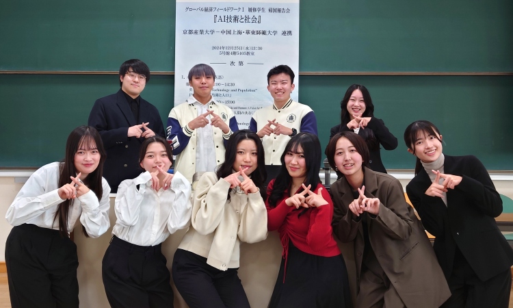 本科目は中国・上海の華東師範大学の学生と、経済や社会に関するテーマについて議論や報告を行うことで国際交流を深め、経済学や社会学の基礎知識修得や英語でのプレゼンテーションスキルの向上を目指します。実際に華東師範大学を訪問するほか、同大学の学生を京都に迎えて交流を深めます。2024年度は「AI技術と社会」をテーマとしています。